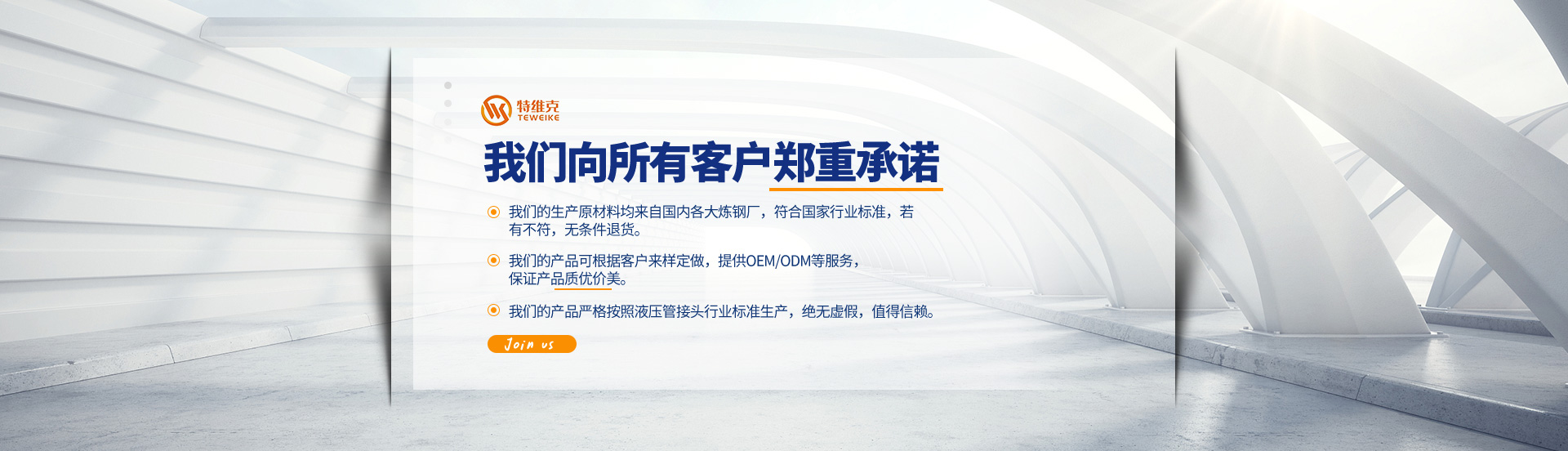 特維克公司位于國際化港口城市-浙江寧波,公司主營液壓過渡管接頭(直通、彎通、三通、四通、堵頭油塞等)。細分分類有:H型24°錐密封卡套式液壓過渡管接頭、D型74°擴口式液壓過渡管接頭、焊接式液壓過渡管接頭、ED密封堵頭油塞等等不同形式的流體連接件。廣泛應(yīng)用于汽車、船舶、礦山機械、工程機械、壓縮機,冶金機械等行業(yè)的流體連接件管路系統(tǒng)中,產(chǎn)品暢銷全國20個省、市,并間接出口到歐洲及西亞。
